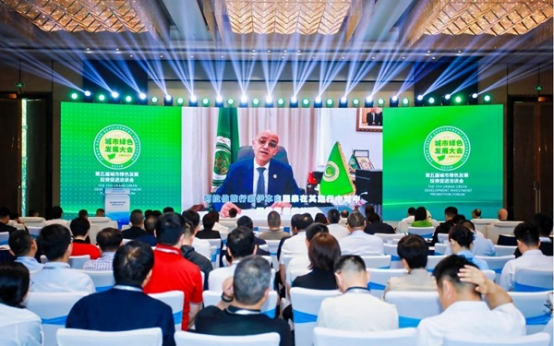 阿拉伯联盟驻华代表处主任法赫米发来视频,祝贺第五届城市绿色创新发展投资促进洽谈会的召开,他说:“在全球倡导可持续发展的背景下,城市绿色投资已成为促进经济发展与环境保护协同共进的关键领域。阿拉伯国家与中国在这方面拥有广阔的合作空间。”