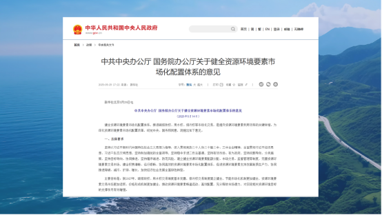 近日,中共中央办公厅、国务院办公厅印发《关于健全资源环境要素市场化配置体系的意见》,深化资源环境要素市场化配置改革。旨在健全资源环境要素市场化配置体系,推进碳排放权等市场化交易,是提升资源环境要素利用效率的关键举措。为深化资源环境要素市场化配置改革提出意见。