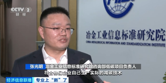 冶金工业信息标准研究院咨询部低碳项目负责人 张光明:从技术上来说,相关岗位的人员要帮助企业筛选符合他们企业自己生产实际的减碳技术。前面碳数据摸清楚之后,按照全国碳市场交易的规则,计算出来企业的碳排放量,然后帮助他们去制定数据质量的控制方案。